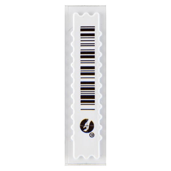 Противокражная этикетка mus3 DR с ложным штрихкодом - самая распространенная и популярная. Штрих-код называется ложным, потому что на самом деле не несёт никакой полезной информации - он одинаков для большой серии этикеток.