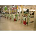 Противокражная система радиочастотной технологии EXERT устанавливается в кассовых проходах непосредственно у кассовых блоков для защиты товаров, имеющих твердые упаковки, реализуемых в супермаркетах и минимаркетах, книжных, компьютерных и других магазинах.