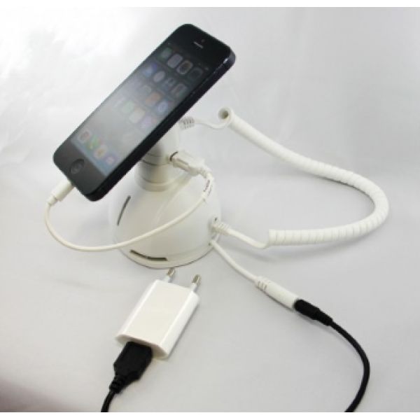 Подробное описаниеВ случае необходимости обеспечения не только защиты, но и заряда устройства на дисплее-подиуме, используется зарядное устройство с выходным напряжением 5 В и силой тока под конкретное устройство.