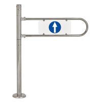 Калитки К11М предназначены для формирования потоков людей в супермаркетах и на проходных. Особенностью калитки является то, что дуга прикреплена к вращающейся трубе, а стойка калитки неподвижна; это позволяет стыковать ограждения непосредственно к стойке калитки. В