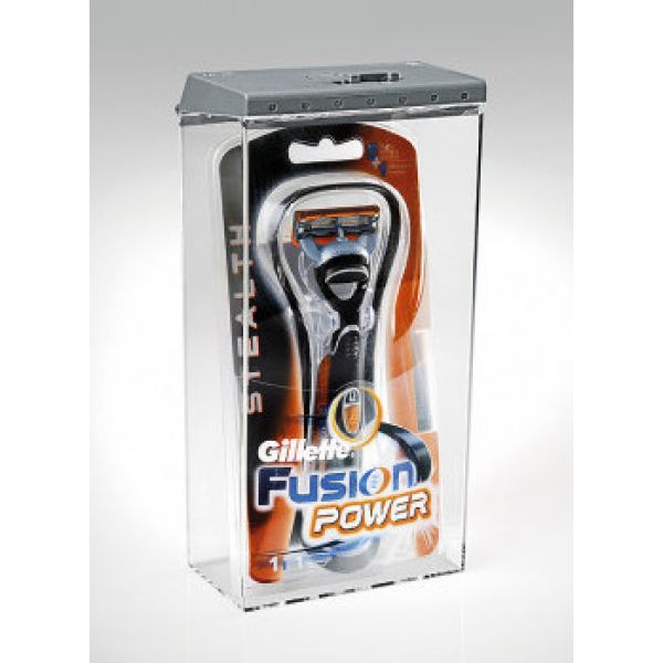 Защитный бокс для бритвенных кассет со сменными лезвиями Gilette, упаковок с энергосберегающими и светодиодными лампами и др. Изготовлен из прозрачного ударопрочного пластика. Цвет крышки серый.