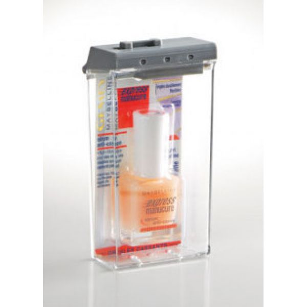 Защитный бокс с прорезью для блистерных упаковок. Подходит для фармацевтических продуктов, картонных упаковок с таблетками и др. Изготовлен из прозрачного ударопрочного пластика. Цвет крышки серый.