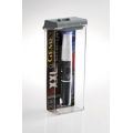 Защитный бокс с прорезью для блистерных упаковок. Подходит для фармацевтических продуктов, картонных упаковок с таблетками, инструментов и др. Изготовлен из прозрачного ударопрочного пластика. Цвет крышки серый.